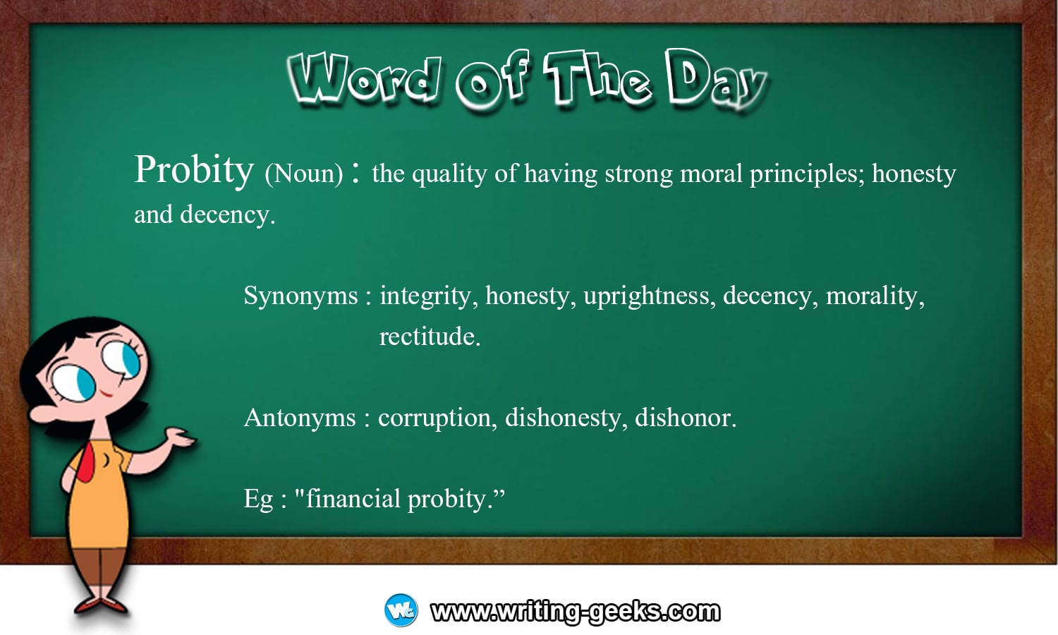 Probity (Noun) : the quality of having strong moral principles; honesty and decency.