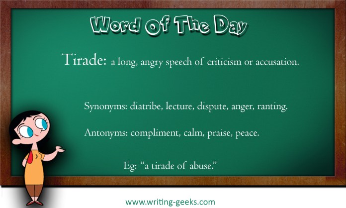 Tirade (Noun) : a long, angry speech of criticism or accusation.